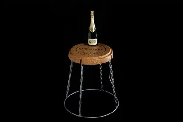 De prachtige champagne muselet stoel van het merk BODEGA43 is één van de creatiefste wijnaccessoires van ons assortiment. De champagne muselet stoel is een unieke design handgemaakte stoel en/of bijzettafel en bij voorbaat het meest originele meubelstuk in huis. De muselet stoel is gemaakt van 100% kurk en is een milieuvriendelijk product (volledig recyclebaar). De champagne muselet stoel is een uitvergrote versie van het ijzeren kapje (muselet) die het kurk van de champagnefles op zijn plaats houdt.