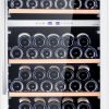 Voor extra isolatie en besparing van energie is de volglazen deur voorzien van 3 dubbel bruin-grijs getint glas dat voorzien is van een extra UV filter zodat invallend licht niet direct schadelijk is voor je wijnen. Deze luxe uitvoering is voorzien van 4 plateaus blank gelakt Sapele hout (een soort van Mahony) die over geleiderails uitschuifbaar zijn.