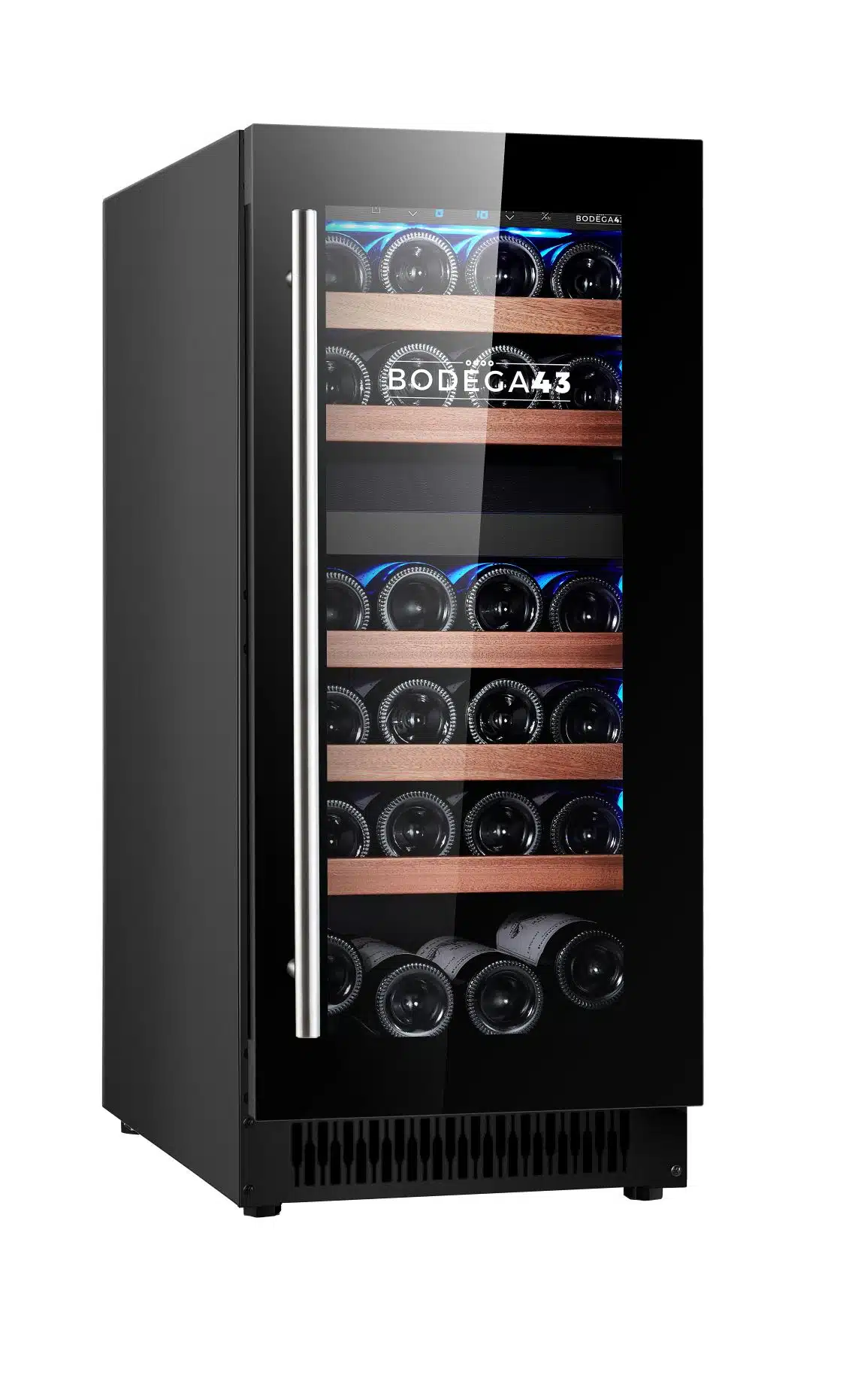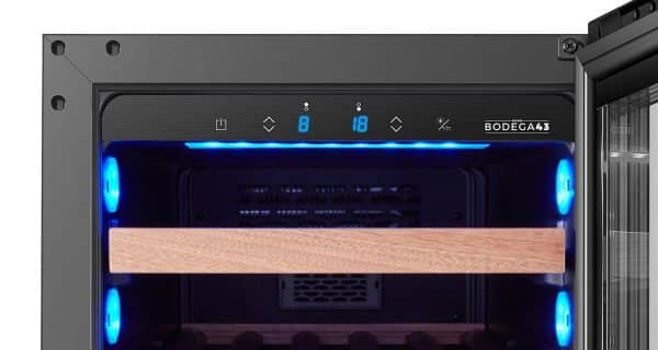 Deze smalle inbouw wijnkoelkast van BODEGA43 heeft een breedte van slechts 38cm. Hij kan zowel vrijstaand worden gebruikt als worden ingebouwd. Door zijn smalle design past de B4328 in vrijwel elke keuken. Vrijstaand kan je deze smalle wijnkoelkast plaatsen als klein tafelmodel. Het is geen probleem om hem ergens tussen te plaatsen of direct tegen een achterwand te zetten. De warmteafvoer vindt namelijk plaats via de voorzijde.
